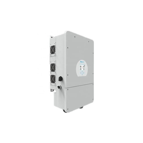 Гібридний сонячний інвертор DEYE SUN-5K-SG03LP1 – це інвертор, призначений для організації безперебійного живлення у невеликих будинках та на дачах, а також для економії електроенергії за допомогою сонячних панелей. Має на борту 2 MPPT контролери, що дозволяє підключати до нього сонячні панелі двох площин і живити будинок або резервувати надлишки в АКБ. Має окремий вхід для підключення генератора.