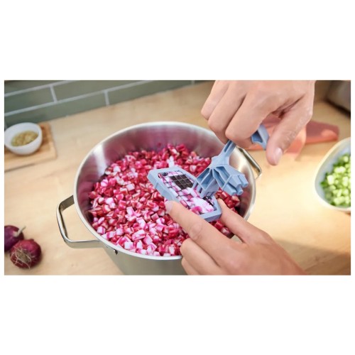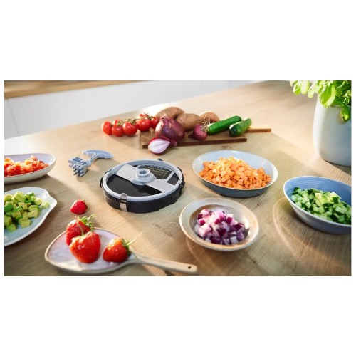 MUZS68CC легко та швидко нарізуватиме необхідні інгредієнти акуратними рівними кубиками. Розмір готових шматочків становить 0.9 х 0.9 см.