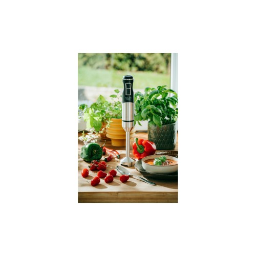 Дизайн блендера передбачає наявність насадки-блендера, що робить його надзвичайно зручним у використанні. Довжина шнура живлення в 1,0 м забезпечує свободу переміщення при роботі, а компактний розмір дозволяє легко зберігати та транспортувати пристрій.