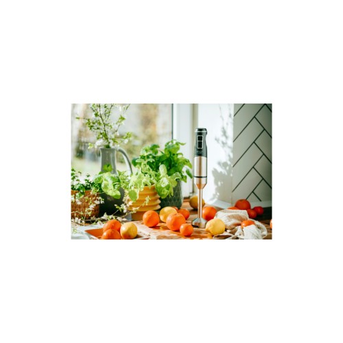 Матеріал ніжки блендера виконаний з металу, що забезпечує додаткову міцність і стабільність під час експлуатації. Леза з нержавіючої сталі відрізняються високою стійкістю до корозії, що гарантує довговічність та надійність використання пристрою. Це запорука тривалого терміну служби та стабільності приготування.