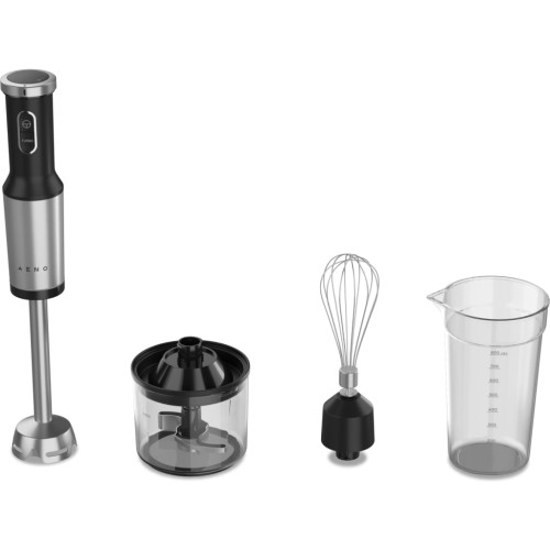 AENO HB4B — це універсальний занурювальний блендер для щоденного використання на кухні. Потужний високоефективний двигун постійного струму 1200 Вт забезпечує швидке подрібнення, збивання та змішування, а широкий діапазон швидкостей із турбо-режимом дає змогу легко підібрати оптимальні налаштування для супів, соусів, смузі, кремів та невеликих порцій страв. Плавне регулювання швидкості здійснюється за допомогою зручного поворотного перемикача, що дозволяє точно контролювати консистенцію продуктів.