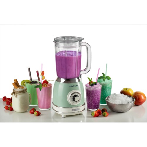 Ariete 583 створений для тих, хто прагне здорового способу життя або любитель свіжих смузі та смачних шейків. Стильний вінтажний дизайн поєднується з відмінною продуктивністю та функціональністю. Миттєво готуйте фруктові та йогуртові напої на сніданок та поживні супи на обід. Ефективне змішування різних за текстурою інгредієнтів. Швидкість роботи стаціонарного блендера можна змінювати за бажанням. За допомогою імпульсного режиму додавайте у суміш інгредієнт із більш щільною текстурою, наприклад, свіжі овочі, фрукти або заморожені продукти. Просто активуйте опцію Pulse та насолоджуйтесь ідеальним змішуванням та подрібненням за 1 секунду. Плавний запуск гарантує легкість змішування та плавне досягнення необхідної встановленої швидкості.