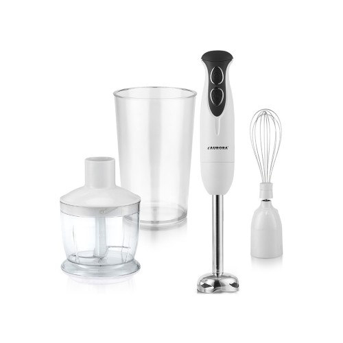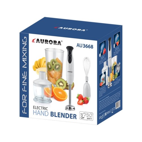 З блендером Aurora AU3668 приготування їжі стає насправді легким та приємним. Він дозволяє швидко і якісно збивати вершки або білки, робити однорідне пюре для супів і десертів, а також змішувати інгредієнти для соусів. Гострі леза з нержавіючої сталі подолають найскладніші харчові інгредієнти, такі як м’ясо, тверді овочі та сири.