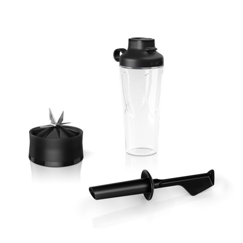 Особлива увага приділена безпечності та зручності експлуатації. Інтуїтивно зрозуміла система фіксації чаші та унікальна кришка з колірним кодуванням сигналізують про її надійність. Червоний індикатор нагадує про необхідність повторної перевірки кріплення, а зелений вказує на готовність до роботи. Дві швидкості та імпульсний режим, що легко налаштовуються, полегшують роботу з різноманітними інгредієнтами, від твердих фруктів і овочів до льоду.
