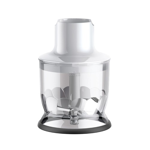У комплекті з блендером Braun MQ 7020 WH знаходиться подрібнювач об'ємом 350 мл, що дозволяє швидко подрібнювати інгредієнти, а також мірна склянка на 600 мл з чіткою шкалою для зручності відмірювання рідин. Цей набір додає універсальності, роблячи блендер ще більш функціональним і бажаним на вашій кухні.