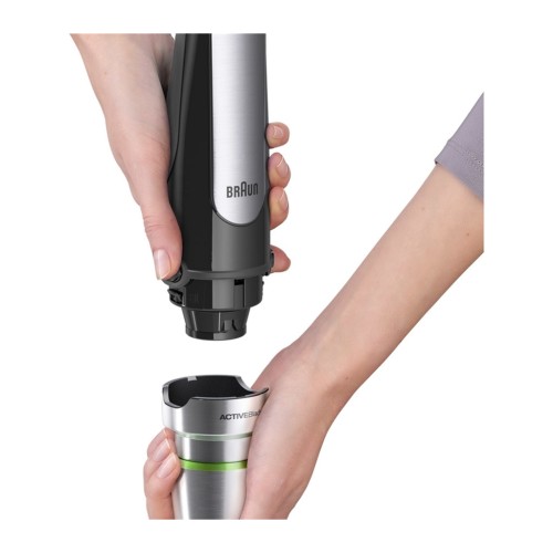 Ергономічний дизайн Braun MQ 7075 X BK робить його використання комфортним і безпечним. Легка вага (усього 0.8 кг) та зручна ручка забезпечують комфорт у процесі роботи. Корпус блендера виконаний з міцного пластику, а металеві леза гарантують тривалу службу і стійкість до зношування. Стильний чорний колір доповнить будь-який інтер'єр кухні.