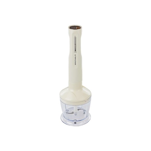 У Grunhelm EBS-819BEP передбачено безліч різноманітних насадок, що роблять його вкрай універсальним у роботі. Все, від насадки для пюре до блендера та вінчика, виконано з високоякісної нержавіючої сталі, що гарантує їхню довговічність і стійкість до корозії. Конструкція ніжки із металу додає стабільності під час роботи, а пластиковий корпус забезпечує легкість у використанні, додатково привертає увагу своєю естетичною привабливістю у молочно-білому кольорі.
