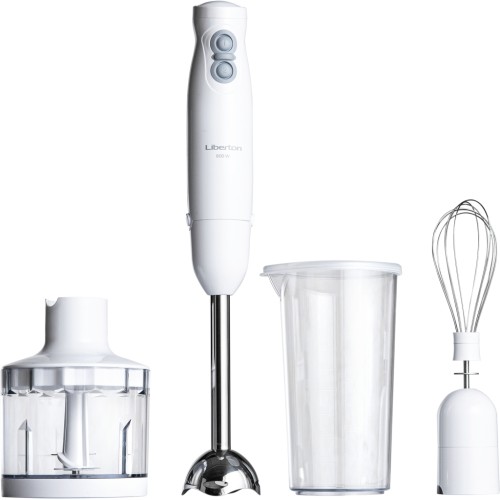 Білий корпус із високоякісного пластику гармонійно вписується в інтер’єр будь-якої кухні, додаючи їй сучасності та стилю. Liberton LHB-0301 обладнаний усіма необхідними насадками та аксесуарами для зручної роботи. В комплекті ви знайдете ніж для подрібнення, що дозволяє легко роздрібнювати овочі та фрукти, насадку-вінчик для легкого збивання кремів чи яєць, і насадку-блендер, яка ідеально підходить для створення гладких пюре чи коктейлів.