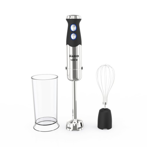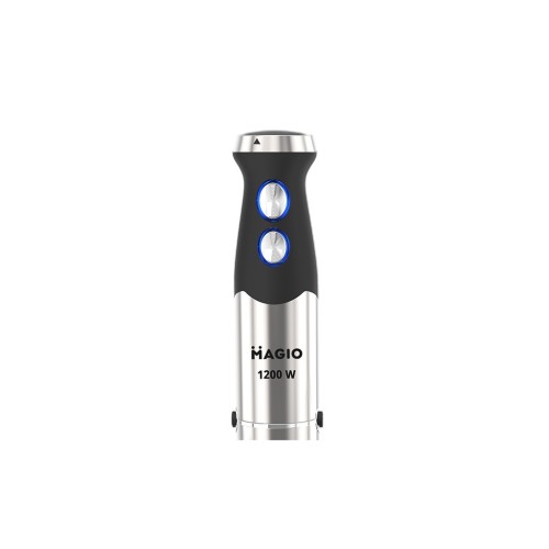 Блендерний набір MG-645 дасть вам змогу урізноманітнити ваше меню і приготувати новий кулінарний шедевр. Потужність блендера становить 1200 Вт, що забезпечує безшумну ефективну роботу впродовж тривалого часу. Заглибна частина зроблена з неіржавкої сталі, а ніж із титановим покриттям — запорука стійкості до зношування й довговічності. Ергономічна ручка з приємним покриттям SOFT TOUCH.