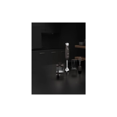 До комплекту входять три насадки: блендерна ніжка, чаша-подрібнювач (0,5 л) та віночок для міксера, а також мерний стакан об'ємом 0,7 л із кришкою (BPA Free).