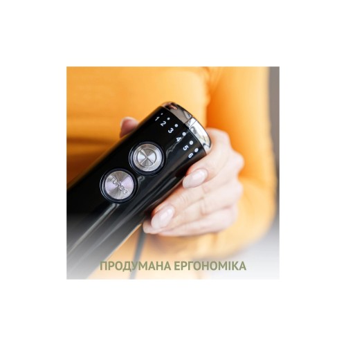 Ергономічне руків’я, великі кнопки керування, окремий регулятор швидкості та кнопка Турбо роблять використання інтуїтивним і приємним. У комплекті також є рецепти, розміщені в посібнику користувача, щоб одразу розпочати кулінарні експерименти.