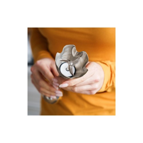 Металева ніжка з нержавіючої сталі забезпечує довговічність і гігієнічність, а інноваційна форма насадки покращує циркуляцію інгредієнтів для рівномірного змішування. Прилад має захист від перевантаження та технологію безпечного блокування, що гарантує надійність у використанні. Рівень шуму не перевищує 75 дБ, тому робота блендера залишається комфортною.