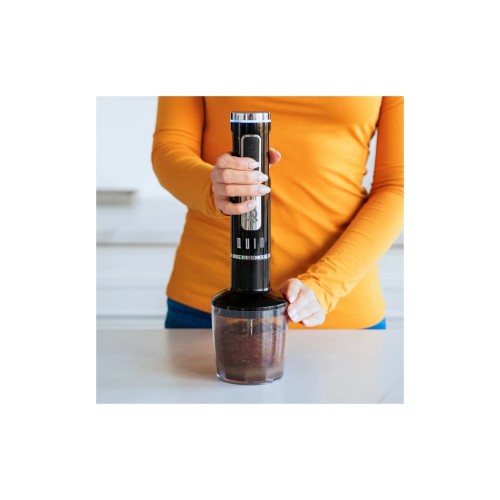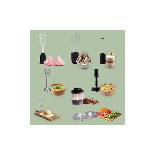 Вражаюча характеристика цього блендера — захист двигуна від перегрівання, що додає надійності та тривалого терміну служби пристрою. Оснащений різноманітними насадками: блендерною, насадкою для пюре, спінювачем молока та вінчиком, цей прилад дозволяє створювати різноманітні страви з легкістю. Крім того, спеціальні насадки і ніж для подрібнення надають змогу готувати як прості коктейлі, так і складні соуси.