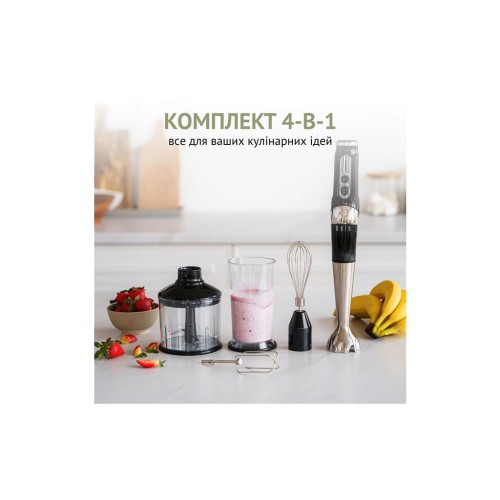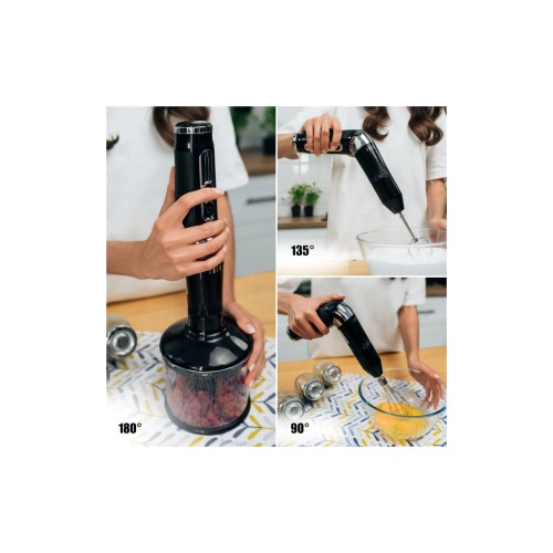 Головною особливістю моделі є гнучкий дизайн із трьома кутами використання — 90°, 135° та 180°, який дає змогу адаптувати положення блендера під будь-яке завдання та тип насадки, забезпечуючи максимальний комфорт у роботі.