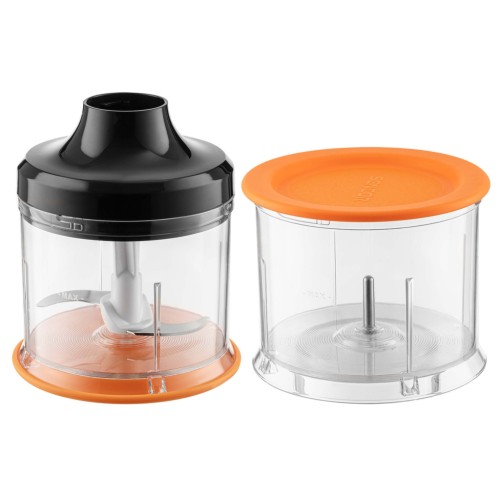 Особливої уваги заслуговує міні-подрібнювач об’ємом 500 мл, який без зусиль подрібнить навіть невеликі порції продуктів. Додатковий чопер стане в нагоді при обробці овочів чи зелені, полегшуючи ваші кулінарні процеси і заощаджуючи час.