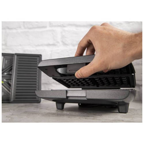 Ця невелика й компактна універсальна бутербродниця знайде своє місце на будь-якій кухонній стільниці. Її можна зберігати на виду, адже вона виглядає сучасно й актуально. Завдяки продуманій конструкції більше жодних сплутаних шнурів. Намотувач шнура вбудовано в корпус, тому прибрати шнур — справа кількох секунд. Хоча ця бутербродниця має просту конструкцію, вона оснащена цільнолитою завісою, яка гарантує міцність і тривалий термін служби приладу.