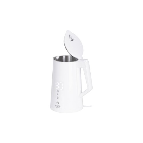 Чайник Adler AD 1345 - багатофункціональний чайник потужністю 1850-2200 Вт та об’ємом 1,7 л. Він підтримує регулювання температури води (40°C/55°C/80°C/90°C/100°C) та підтримку тепла в діапазоні 40-100 °C впродовж 24 годин.