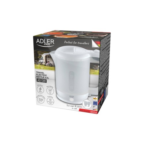 Adler AD 1381 - компактний чайник потужністю 900 Вт та об’ємом 0,5 л, який чудово підійде як для подорожей та кемпінгів, так і для домашнього використання.
