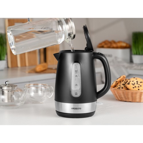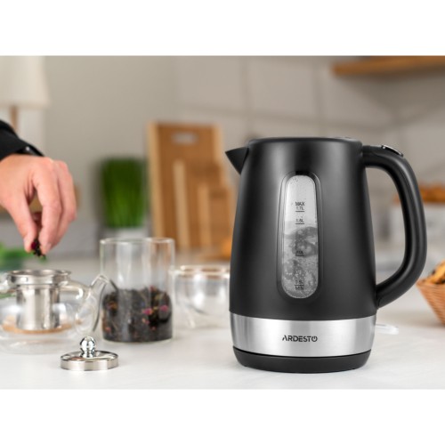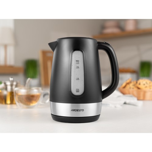 Електрочайник Ardesto EKL-F19B - це сучасний пристрій, що поєднує функціональність, стильний дизайн і надійність. Його корпус із пластику з елементами з нержавіючої сталі надає йому привабливого зовнішнього вигляду та забезпечує міцність і довговічність. Ергономічна ручка з полікарбонату забезпечує комфортне утримання чайника в руці під час наливання гарячої води, що робить його використання зручним та безпечним.