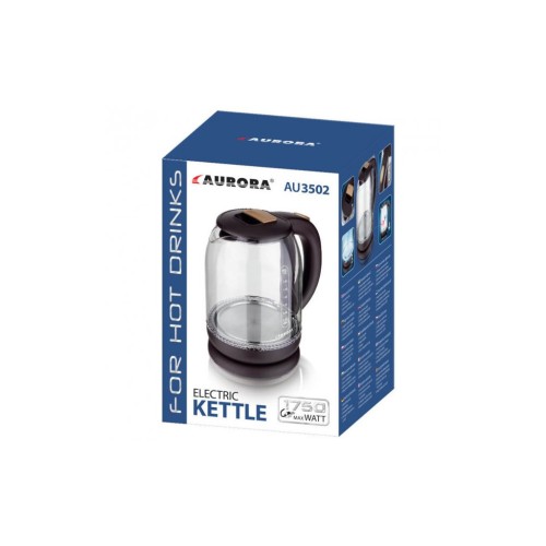 Однією з ключових переваг Aurora AU3502 є екологічний скляний корпус з приємним синім підсвічуванням, що не лише додає естетичну привабливість, але й дозволяє контролювати процес кип'ятіння води. Зовнішній індикатор рівня води допомагає точно відміряти потрібну кількість рідини, що зручно для приготування улюблених напоїв.