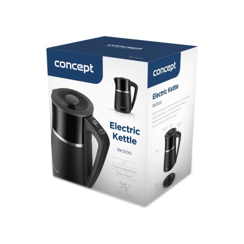 Чайник Concept RK3100 не тільки чудово виконує свої функції, але й стане стильним акцентом вашої кухні. Поєднання чорного кольору з матовим та глянцевим покриттям, доповнене нержавіючою сталлю, робить його естетично приємним і сучасним аксесуаром. Практична функція Keep Warm зберігає потрібну температуру ідеальної чашки чаю або кави, що готова до вживання у будь-який момент.