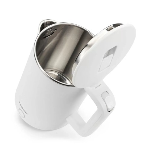 Матеріал корпусу з нержавіючої сталі забезпечує не тільки довговічність, але і високу стійкість до корозії. Внутрішня частина корпусу виконана зі сталі без бісфенольних сполук, таких як BPA, що гарантує безпечність кип’яченої води. Подвійні стінки конструкції мають неоціненну перевагу — вони зберігають тепло всередині, мінімізуючи втрати енергії, а зовнішня частина залишається холодною на дотик, завдяки чому пристрій абсолютно безпечний для користування навіть дітьми.