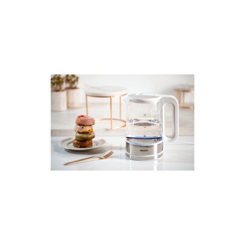 Однією з головних переваг цього електрочайника є функція температурного контролю. Ви можете встановити один з п'яти режимів нагрівання (60°C, 70°C, 80°C, 90°C, або 100°C), що ідеально підходить для приготування певних напоїв, таких як зелений чай або дитячі суміші, які потребують певної температури. Чайник оснащено світловим індикатором, що змінює своє світіння залежно від обраної температури, надаючи процесу заварки особливого шарму.
