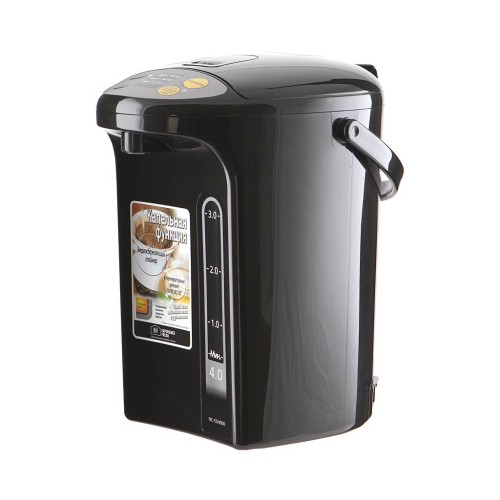 Термопот оснащений прихованим нагрівальним елементом (диском) для рівномірного нагрівання і легкого догляду. Його практична відкидна кришка спрощує наповнення водою і очищення приладу, а зовнішній індикатор рівня води дозволяє легко контролювати залишок рідини.