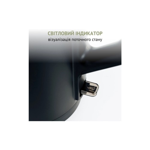 Електрочайник оснащений усіма необхідними системами безпеки: автоматичним вимкненням після закипання, захистом від перегріву та блокуванням роботи без води. Зручна ергономічна ручка та світловий індикатор увімкнення підкреслюють зручність і продуманість конструкції.