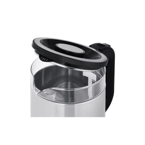 Електрочайник Rotex RKT94-S Prima Glass оснащений потужністю 1500 Вт і має об’єм 1,8 л, що робить його оптимальним для швидкого кип’ятіння невеликої кількості води. Корпус виконано зі скла з елементами нержавіючої сталі, а подвійні стінки додають енергоефективності та знижують нагрів зовнішньої поверхні. Чайник обладнаний прихованим (дисковим) нагрівальним елементом, що гарантує легке очищення та надійну експлуатацію.