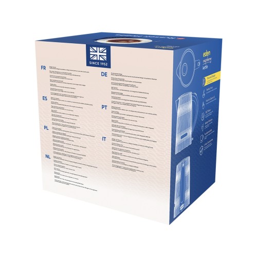 Чайник Eden від Russell Hobbs - це ідеальне поєднання дизайну та продуктивності. Непомітне віконце для води з індикатором кількості води дозволяє економити енергію, закип'ячуючи лише стільки води, скільки вам потрібно. Кришка, що відкривається натисканням, покращена воронка та основа, що обертається на 360°, забезпечують легке наповнення, кип'ятіння та наливання. А оскільки ваш чайник завжди на виду, чому б не мати такий, на який приємно дивитися? Завдяки модному кольору та стильному текстурованому покриттю він чудово виглядатиме на будь-якій кухонній стільниці.