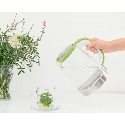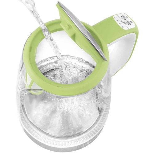 Особливою родзинкою є світловий індикатор, який повідомляє про роботу чайника, надаючи додатковий комфорт у повсякденному використанні. Елегантний салатовий колір ідеально впишеться у будь-який інтер'єр, додаючи яскравості та свіжості.