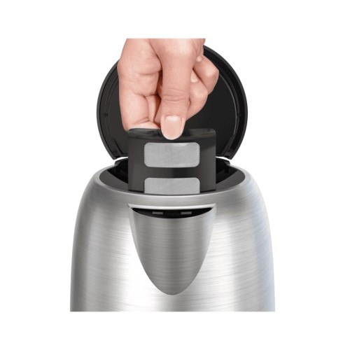 З об'ємом 1.7 літра, цей чайник чудово підійде навіть для великої родини або гостей. Завдяки потужності 2400 Вт ви можете бути впевнені у швидкому нагріванні води, що дозволяє заощадити не лише ваш час, а й енергію. Електрочайник виготовлений з нержавіючої сталі, що забезпечує довговічність та бездоганний стиль, втім, він легко впишеться в інтер'єр як класичної, так і сучасної кухні.