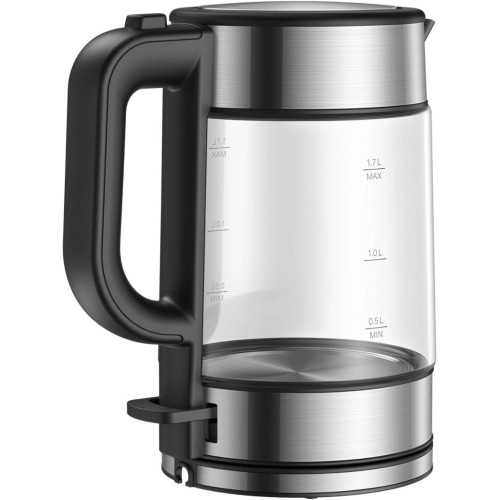 Прихований нагрівальний елемент потужністю 2200 Вт за лічені хвилини може довести до кипіння 1.7 літра води. Щоб не кип'ятити зайвого, скористайтеся мірною шкалою, яка нанесена на колбі. Так ви зможете отримати свій напій швидше та заощадите на рахунках за електрику.