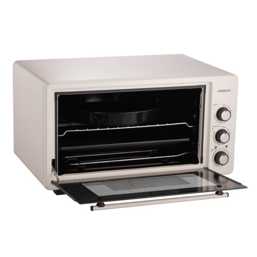 Вдале поєднання бежевого кольору корпусу з обтічними контурами й затемненого скла на дверцятах додає моделі MEO-S45GBG виразної елегантності. З огляду на це піч пасуватиме чи не до будь-якого стилю кухонної зони. Крім стильного дизайну, модель вирізняється доволі ємною внутрішньою камерою (45 л) і гідною потужністю – 1 600 Вт.