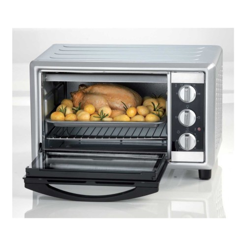 Електропіч оснащена піддоном для крихт, який потрібно час від часу спорожняти, дверцятами з подвійним склом, зручними регуляторами температури. Аксесуари, які ви придбаєте, обравши цю модель: решітка для запікання, деко, ручка, за допомогою якої зручно витягувати деко з печі. Хочете готувати швидко і смачно? Така електропіч - те, що вам потрібно!