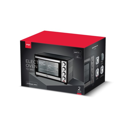 Модель ERGO TO 940 – це настільна піч із чотирма електричними нагрівальними елементами потужністю до 2000 Вт, регулюванням температури до 250°С і з просторим внутрішнім об'ємом 48 літрів, чого достатньо для приготування найрізноманітніших страв.