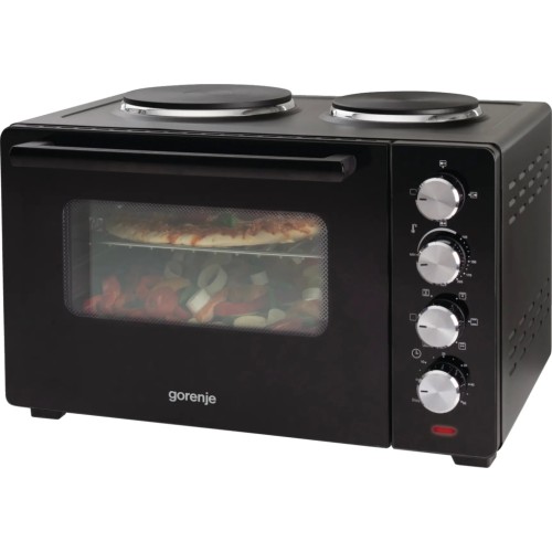 Як звичайна піч, лише менше. З потужністю 1600 Вт, п'ятьма режимами духовки та двома електричними конфорками цю міні-піч можна назвати міні-кухнею. Електричні конфорки можуть працювати одночасно з духовкою, тому у вас буде ідеальна комбінація. Насолоджуйтесь повноцінною їжею в духовці Gorenje Mini.