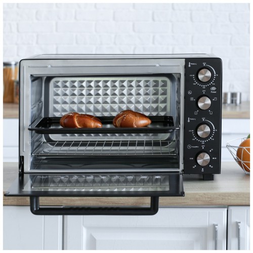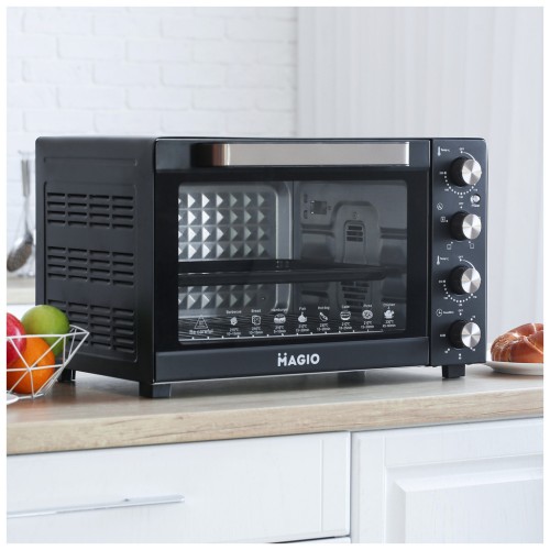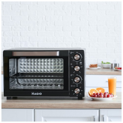 Електрична піч, здатна смажити, випікати, розігрівати і при цьому займе зовсім небагато кухонного простору! Magio MG-251 - компактний прилад, який знайде місце на домашній кухні, а невеликі розміри дозволять при необхідності взяти піч з собою, наприклад, на дачу.