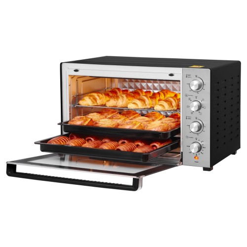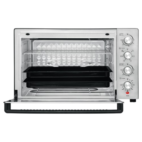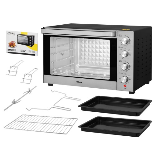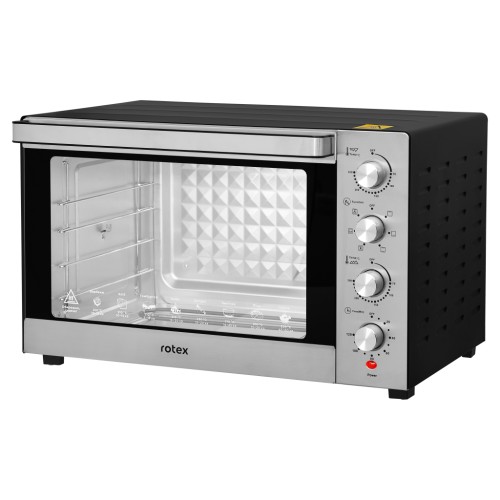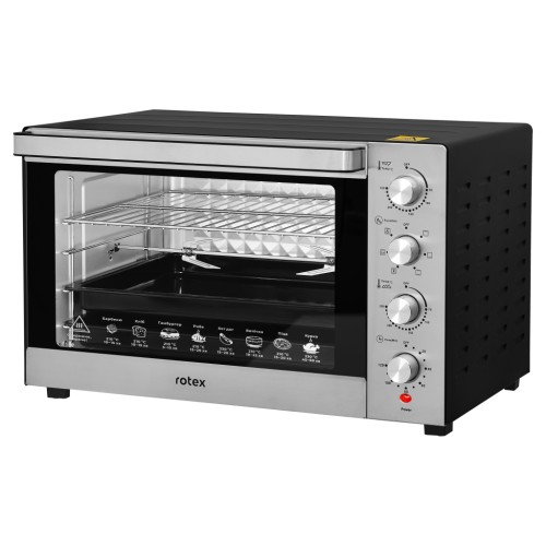 Rotex ROT854-CB оснащена механічним керуванням пристрою з панеллю керування в передній частині печі для більшої зручності. Електродуховка оснащена шістьма допустимими режимами готування, куди включається верхнє і нижнє нагрівання нагрівальних елементів, конвекція, гриль, розморожування. Всі ці базові режими дозволять урізноманітнити ваш стіл смачними стравами з хрусткою скоринкою, адже конвекція дозволяє оптимальному циркулювання гарячого повітря всередині всього простору.