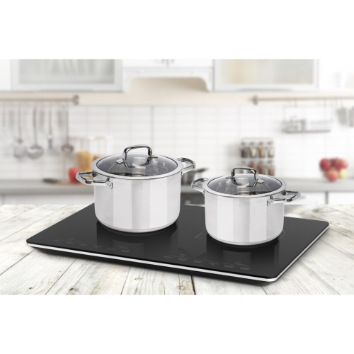 Окрема електрична індукційна плита ECG IV 2920 гарантує безпечне приготування їжі. Вона оснащена ковзними ніжками. Датчики виявляють і запобігають перегріву та перенапрузі. Електрична плита також автоматично вимикається, як тільки посуд знімається з плити. Дві конфорки діаметром 17 підходять для посуду діаметром 12-30. Таймер можна встановити до 180 хвилин. Завдяки своїм компактним розмірам та вазі всього 4,5 пристрій ідеально підходить для відпустки та особливо для заміського будинку. Ви можете встановити потужність та температуру одним натисканням кнопки на великому сенсорному світлодіодному дисплеї. За склокерамічною поверхнею дуже легко доглядати. Шнур живлення має довжину 145. Потужність 2900 при нормальній робочій напрузі 220 - 240 В. Вантажопідйомність 20.
