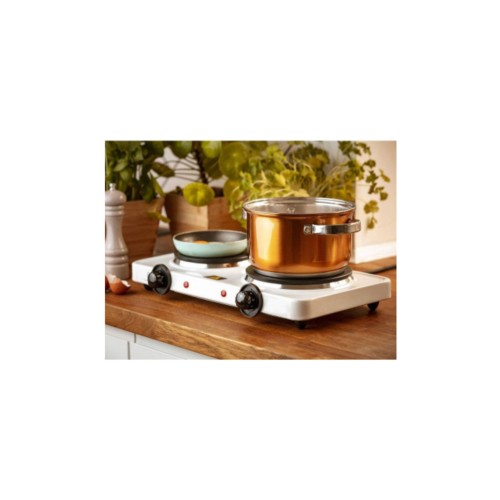 Електрична плита Esperanza Cotopaxi EKH010W ідеально підходить для тих випадків, коли доступ до газу обмежений або потрібна додаткова робоча поверхня для приготування страв. Вона стане незамінною під час сімейних свят, домашніх вечірок або тимчасового проживання в орендованому житлі. Плита оснащена двома чавунними конфорками потужністю 1000 Вт кожна та п’ятьма рівнями регулювання температури, що дозволяє точно контролювати процес приготування їжі. Завдяки вбудованому захисту від перегріву ви можете бути впевнені в безпечній експлуатації.