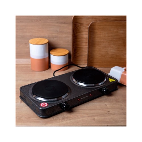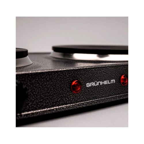 Електроплита Grunhelm GHP-5614 потужністю 2000 Вт має дві конфорки діаметром 15,5 см.