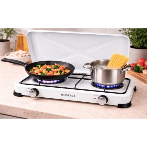 Газова настільна плита Kumtel HGCL-1002W — це компактна та надійна модель для приготування їжі в домашніх умовах, на дачі чи у невеликій кухні. Стильний білий корпус і практичний дизайн чудово вписуються в будь-який інтер’єр та не займають багато місця на кухонній поверхні.