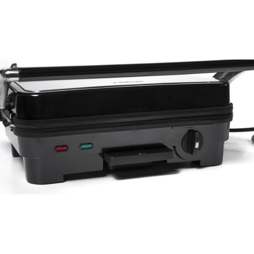 З контактним грилем Hölmer HCG-160 не складно готувати різноманітні м'ясні, овочеві та рибні страви, а також розігрівати пироги, піцу або сендвічі. При використанні контактного гриля продукти готуються швидко, оскільки вони контактують з плитами одночасно з двох сторін, зберігаючи корисні властивості продуктів. Просто підберіть оптимальну температуру для ідеального прожарювання і виберіть одне з двох робочих положень гриля (кут відкриття конструкції - 105°/180°).