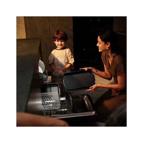 Усі частини, включно зі знімними пластинами, мають антипригарне покриття без PTFE/PFOA, що гарантує безпечне приготування. Знімна кришка й аксесуари придатні для миття в посудомийній машині. Термоізольовані ручки запобігають опікам і роблять використання максимально безпечним.
