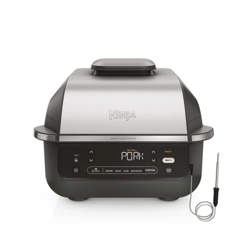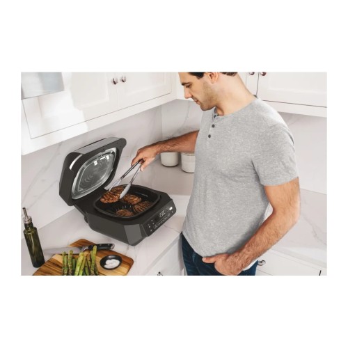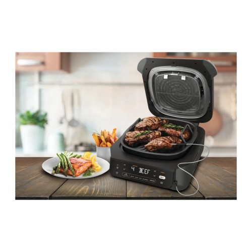 Хрустка скоринка без літрів олії, ідеально просмажений стейк із рум’яними смужками, овочі-гриль з димним ароматом. Усе це можна приготувати без відкритого вогнища, надмірного вмісту жиру та в кілька разів швидше, ніж у звичайній духовці. Ninja Foodi Air Grill & Air Fryer EG351EU – це не просто гриль, а справжня міні-кухня з 5 функціями: гриль, запікання, аерофритюр, смаження та дегідратація. Завдяки технології Cyclonic Air гаряче повітря рівномірно циркулює та створює ідеальну текстуру страв. Потужність 1760 Вт, великий кошик об’ємом 5,7 л та термощуп Smart Cook дають повний контроль над процесом. Готуйте швидше, смачніше та корисніше – споживання олії зменшується на 75% з Ninja!