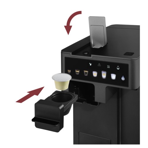 Капсульна кавоварка Catler Renzo ES751BRENZO поєднує стильний дизайн із функціональністю: тиск 20 бар, резервуар для води на 1,6 л, сенсорний дисплей та підтримка як капсул, так і меленої кави. Оснащена адаптерами для різних типів капсул, перехідником для меленої кави й резервуаром для молока зі спінювачем — для приготування ідеального еспресо, латте або капучино одним дотиком.