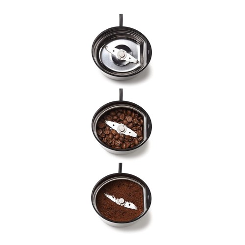 Як додаткий захід безпеки, леза обертаються лише тоді, коли кришка надійно встановлена на кавомолку, для процесу, який дозволяє молоти каву та будь-які інші інгредієнти в повній безпеці.