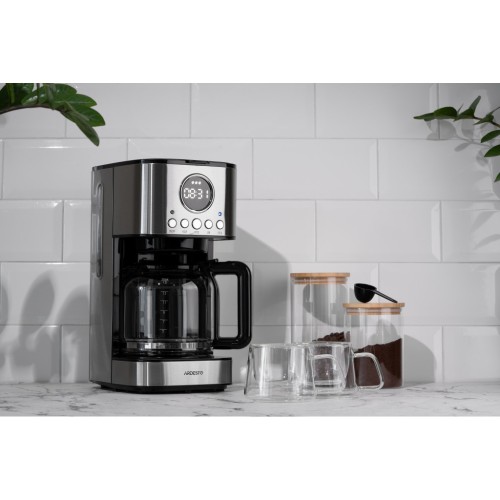 Крапельна кавоварка для меленої кави з потужністю 900 Вт, таймером приготування, підігрівом кавника та вибором міцності напою. Кавоварка FCM-D3100 оснащена сенсорним блоком управління з дисплеєм, багаторазовим знімним фільтром і підтримує приготування чаю.
